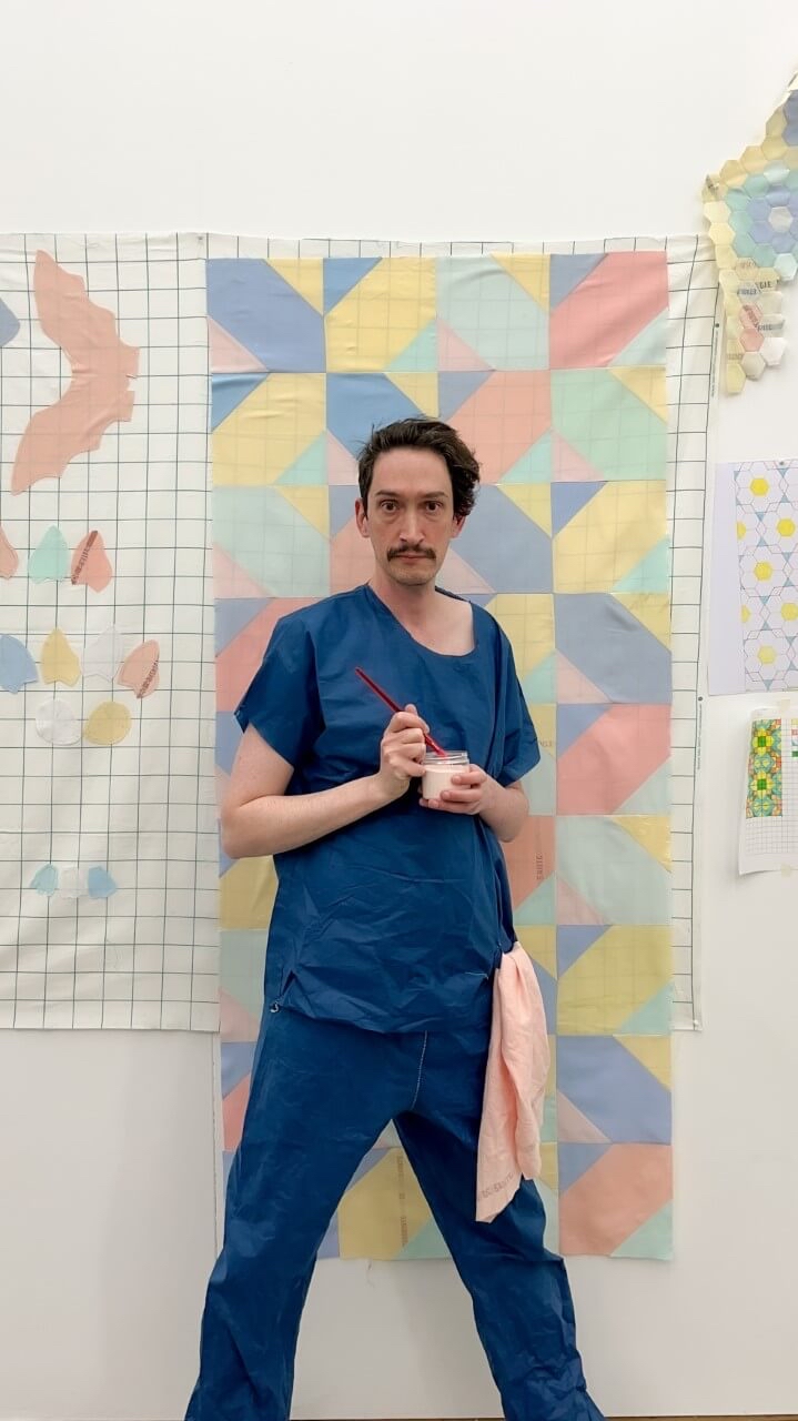 J’ai passé beaucoup de temps dans la rue et je la connais très bien. J’ai conservé un rapport magique et affabulatoire avec cet environnement. Par exemple, quand tu dors sur un carton triple cannelure, avec un peu de soleil, tu peux te transformer en chat qui synthétise de la vitamine D. Et si la moquette n’est pas suffisamment épaisse pour dormir dans un hall, avec un pass de livreur, tu peux changer d’immeuble. Dans l’exposition, je joue sur le mode intérieur / extérieur : le visiteur devient voyeur. Je raconte aussi mon rapport à la ville : le principe des paillettes en mouvement reprend celui des lampes installées dans les espaces sensoriels des hôpitaux pour stabiliser les personnes neurodivergentes. Cet état de suspension, de dispersion et d'indétermination, c’est le cœur de l'exposition.